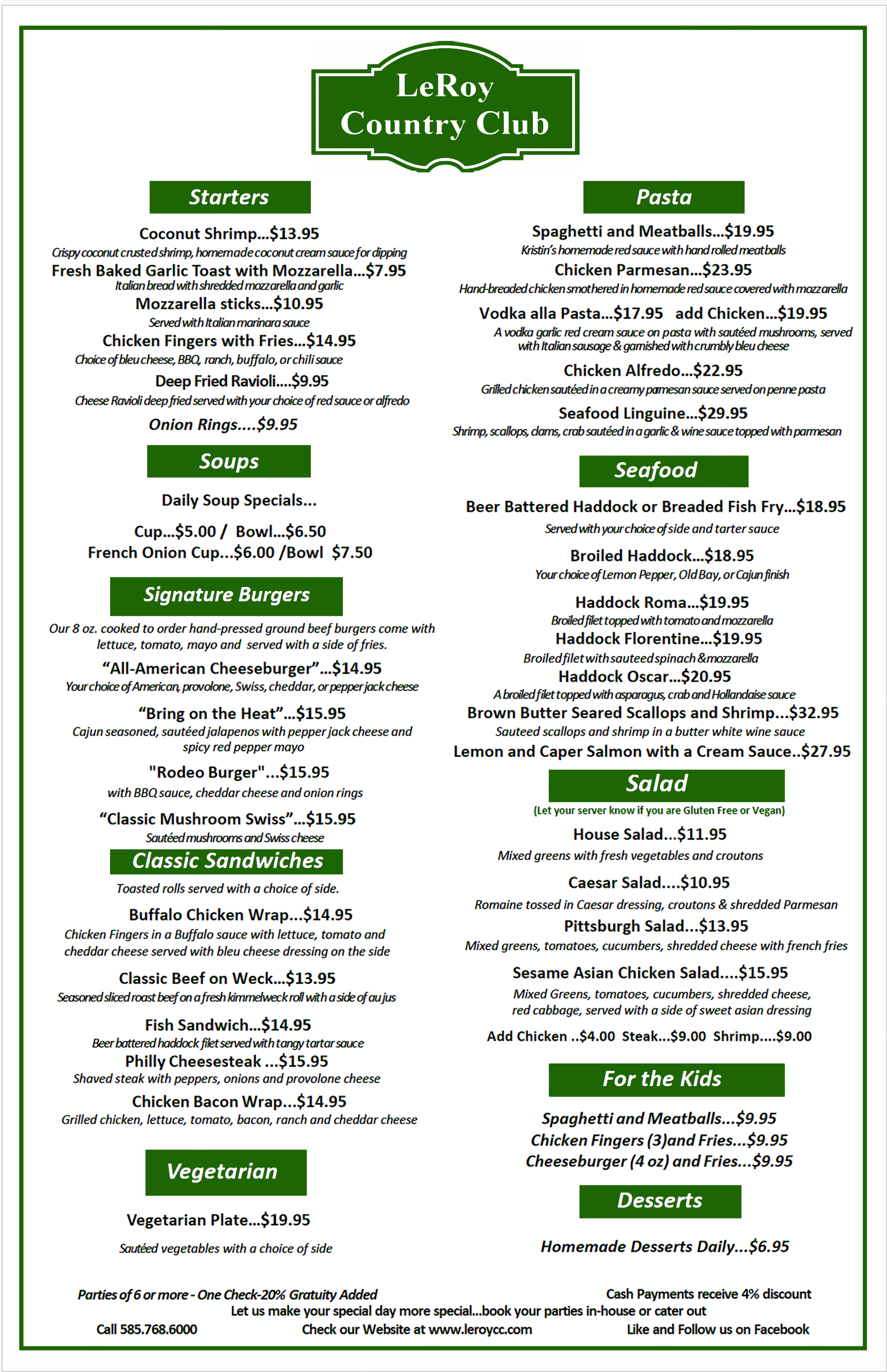 canceled, your deposit will become property of LeRoy Country Club.